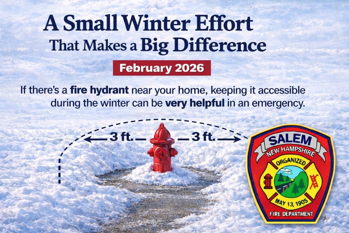 The Town of Salem has nearly 900 fire hydrants located throughout the community. During the winter months, snow and ice can sometimes make these hydrants difficult to access.