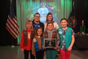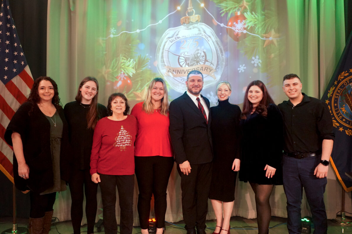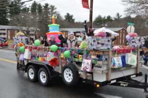 In second place was the Recreation Advisory Committee. Their float included DJ Jim Koczat in front a beautiful Christmas tree and a mailbox for letters to Santa. The Girl Scouts of Troop 51943 celebrated the theme of the parade, 275th Anniversary of Salem, NH, by throwing a birthday party on their float and taking home third place in the “community” category this year!