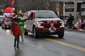 Our parade wouldn’t be complete without the dazzling displays and big personalities of our local businesses! Placing first in this year’s parade was Canobie Lake Park. They brought the festivities with some characters dancing on the old trolley pulling a winter wonderland scene complete with a bubble machine! Following the trolley were some of their spooky Screamfest actors and the iconic Screamfest hearses.