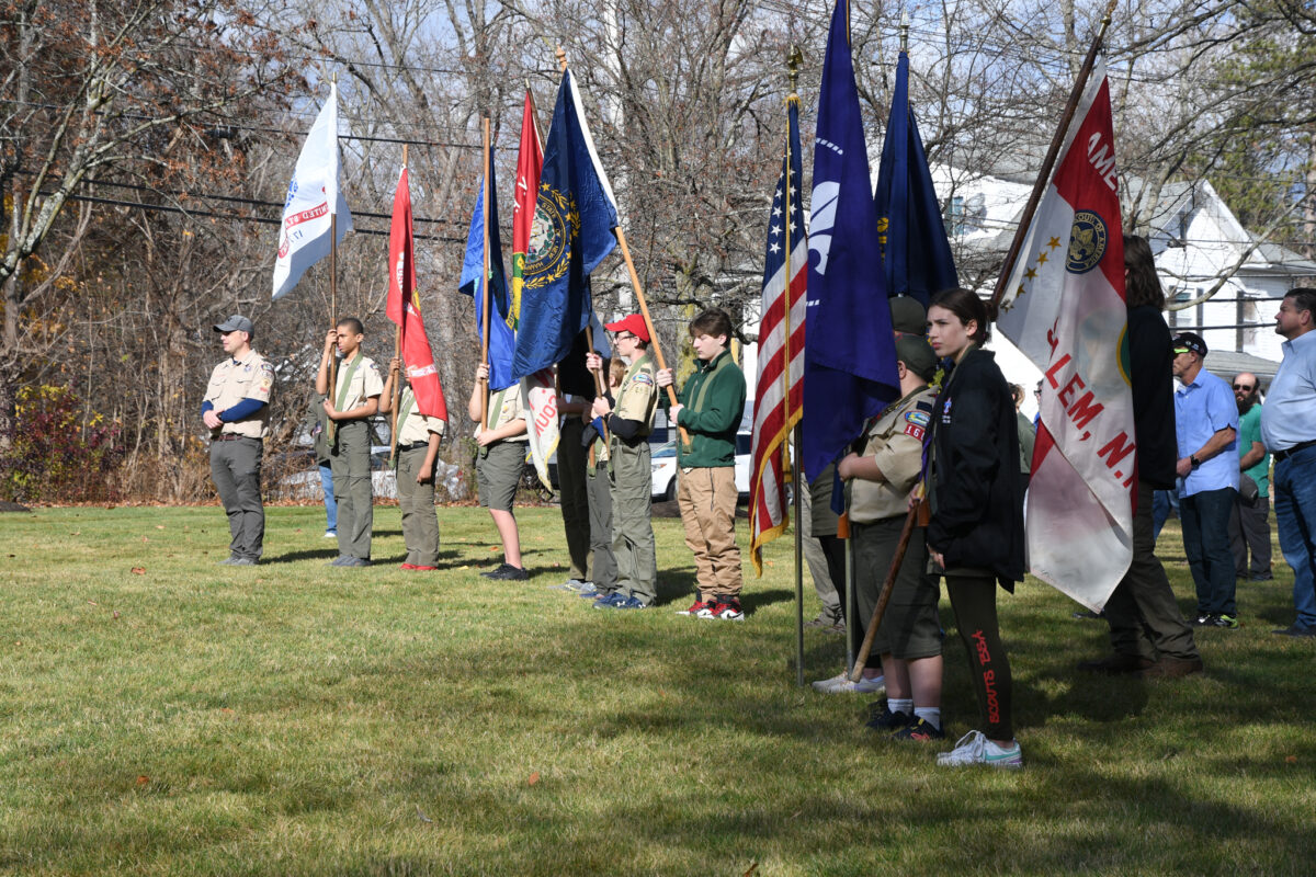 Salem was host to a Veterans Day Ceremony at Veterans Memorial Park on November 11, 2024. The event featured a gathering and salute to veterans of all miliary branches and recognition of those missing in action. The event included a blessing, brief speeches and a choral rendition of patriotic music. Resident Brian Flanagan was present and provided a number of photographs from the event. Thank you Brian for sharing them with the community!