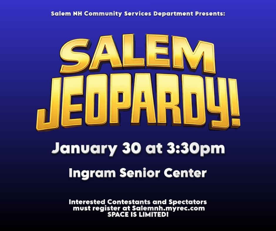 The Salem NH Community Services Department invites residents to take part in Salem Jeopardy, a fun and engaging trivia event open to the entire community on January 30, 2026, at 3:30 p.m.