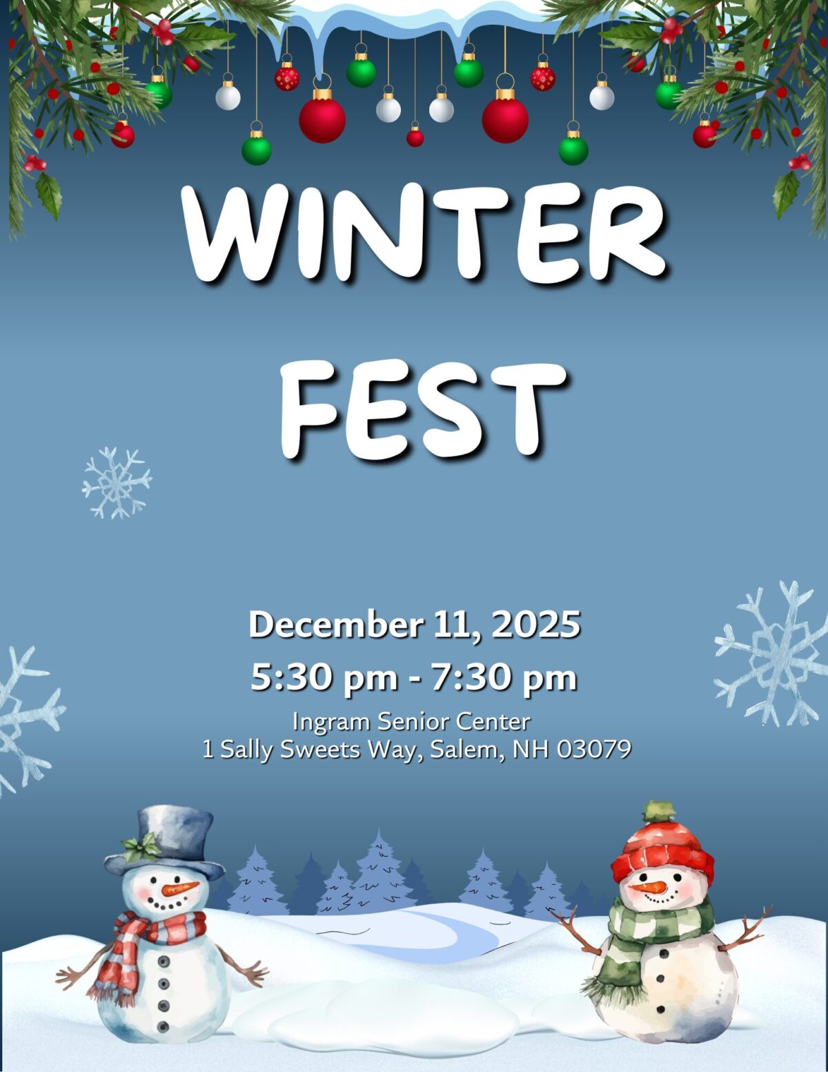 The holiday season will kick off in Salem with the return of Winterfest, a community event designed to bring together people of all ages for an evening of festive fun. Scheduled for Thursday, December 11, 2025, from 5:30 to 7:30 p.m., the celebration will take place at the Ingram Senior Center, located at 1 Sally Sweets Way, Salem, NH 03079.