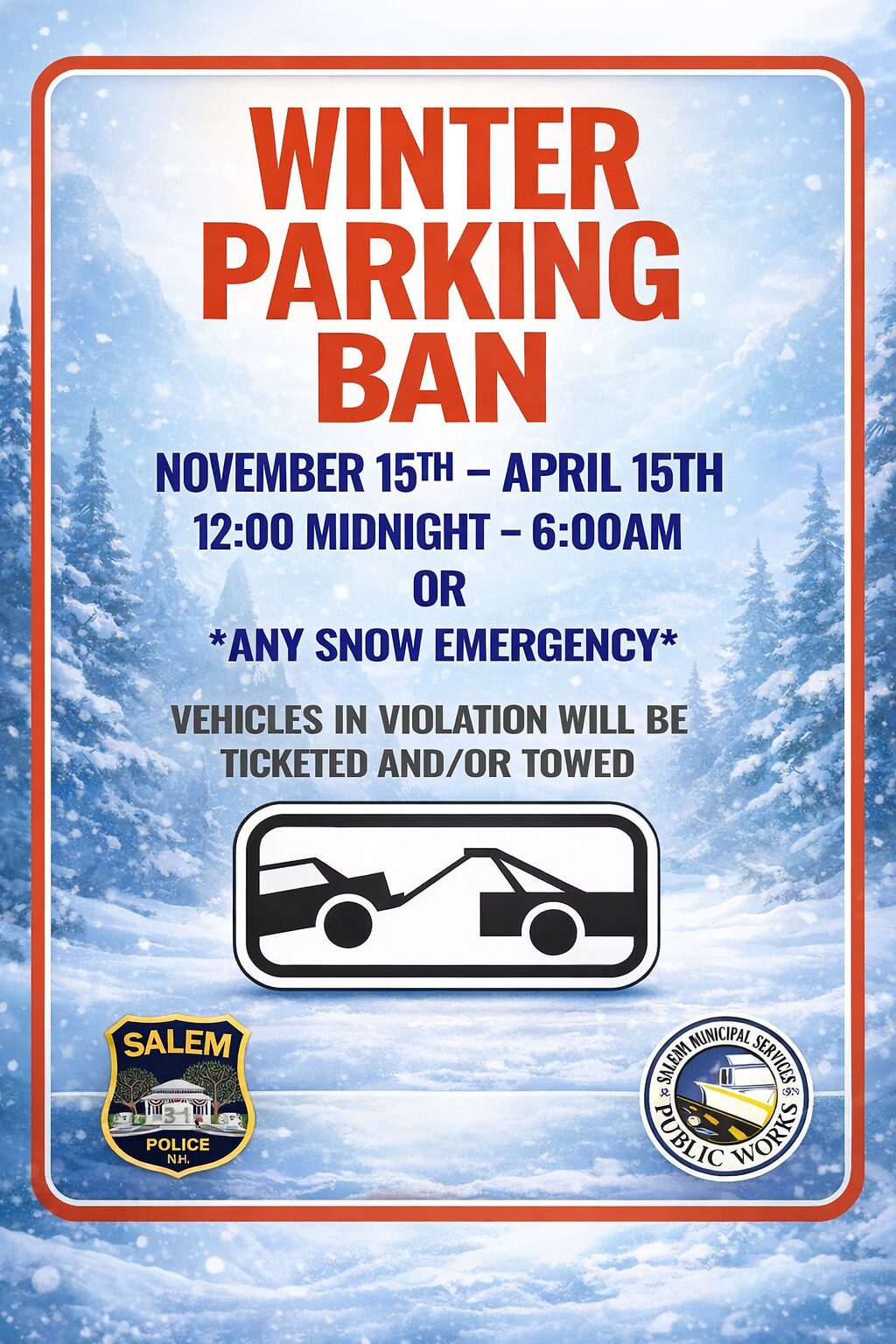 Thank you for your cooperation in helping keep Salem’s roads clear, safe, and accessible throughout the winter season.